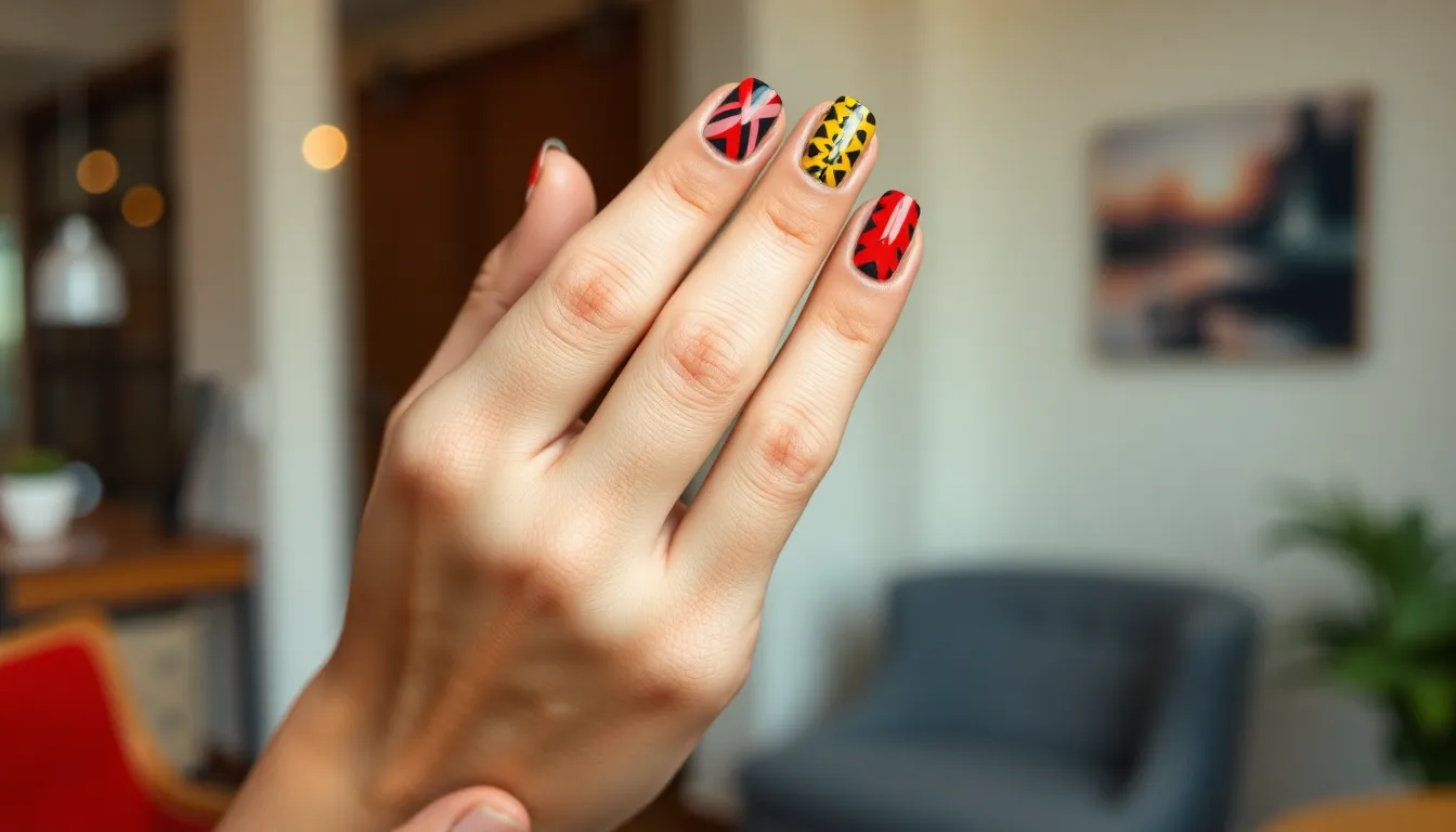 Combining contrasting colors creates dynamic nail art that intrigues the eye. Black and white remain a classic pairing that exudes elegance and modernity. Bright pink combined with deep green generates a playful yet striking look, ideal for summer. Pairing royal blue with a soft yellow produces a cheerful effect, perfect for casual outings. Another bold duo includes purple and orange, bringing vibrant energy to the nails while showcasing creativity and fun.